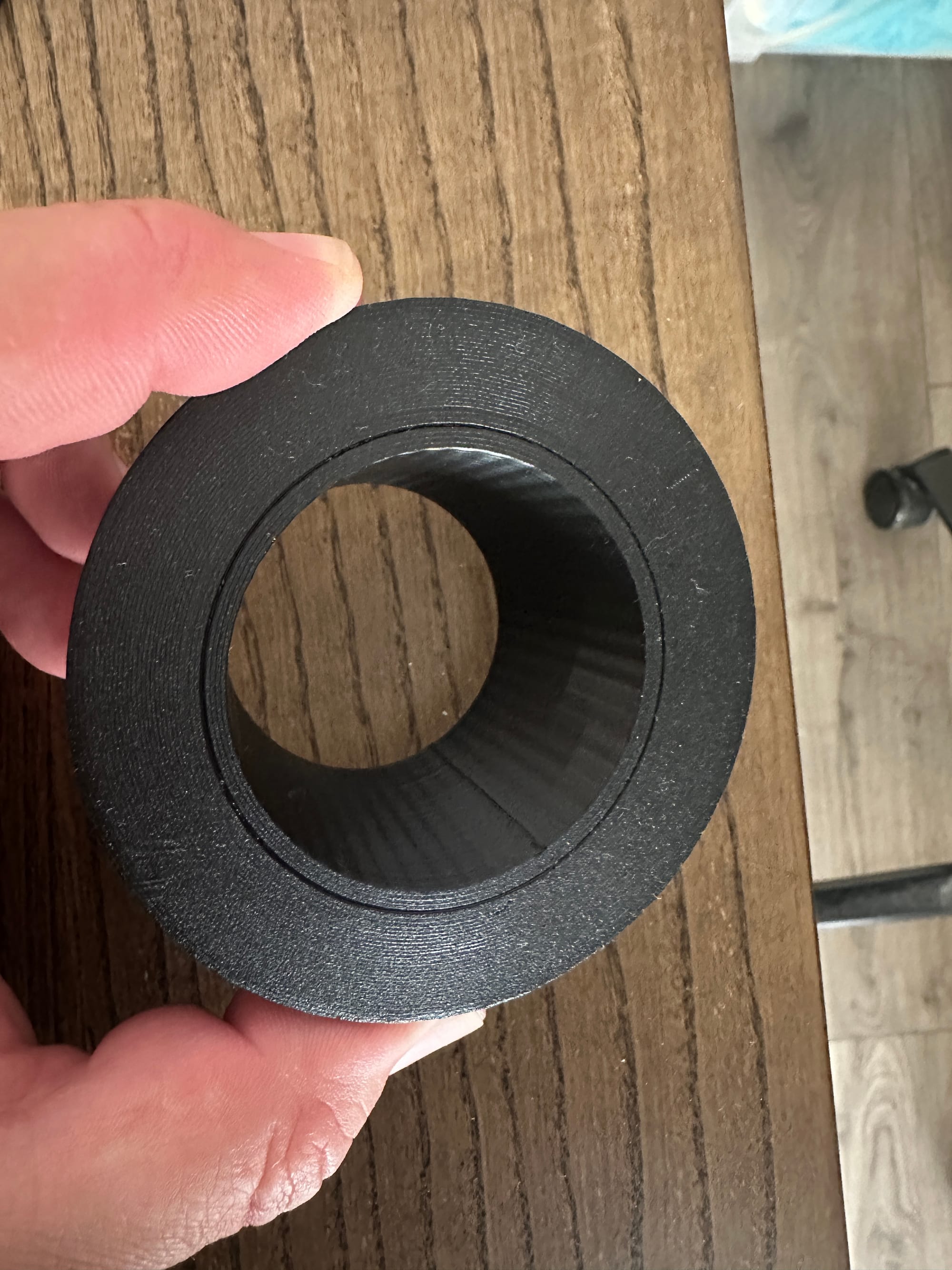 I redesigned the piece with a tapered profile, making it slightly larger on the entry side and slightly smaller on the opposite end. This meant that when I pushed it onto the chair pole, the narrower section would flex just enough to clamp tightly in place. The result was a snug, secure fit that didn’t scrape the floor and didn’t move unless I wanted it to. It solved the problem cleanly, permanently, and without requiring any ongoing effort from me.